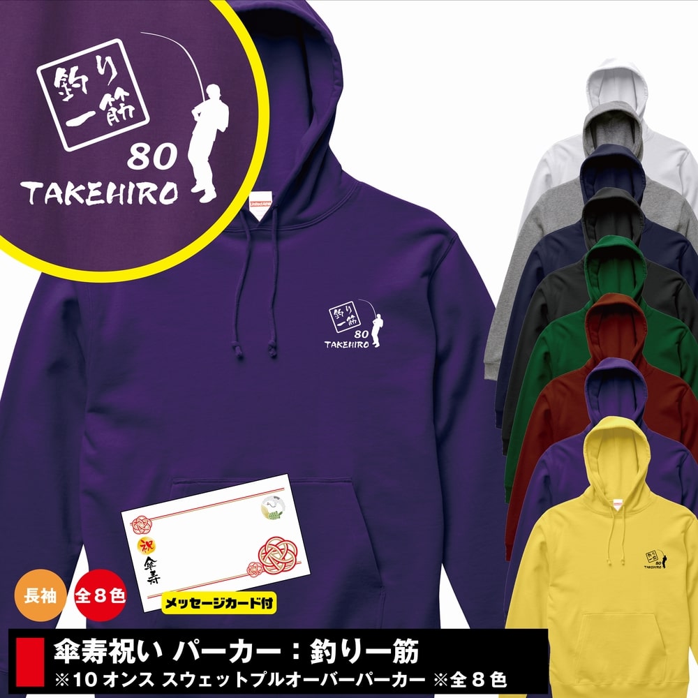 【名入れ】釣り一筋 傘寿祝いパーカーS M L XL 3L 長袖 スウェット 男性 女性 メンズ レディース 誕生日 プレゼント 誕生祝 80歳 ギフト お祝い 贈り物 長寿祝 退職祝 父 母 祖父 祖母 記念日 おもしろ tシャツ 2020 父の日 母の日 フィッシング 魚 ブラックバス ルアー