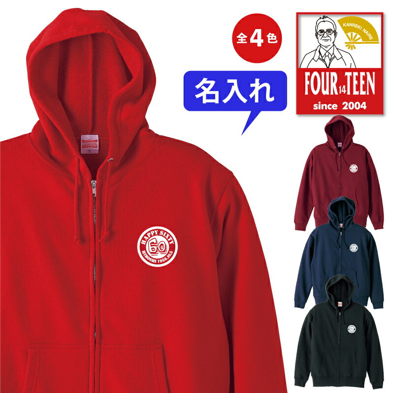 名入れ 還暦フルジップパーカー 還暦祝い アメカジサークルロゴデザイン 大きいサイズ 男性 父 女性 母 両親 上司 友人 プレゼント 喜ばれる人気商品 売れ筋 2021 定番商品 5213