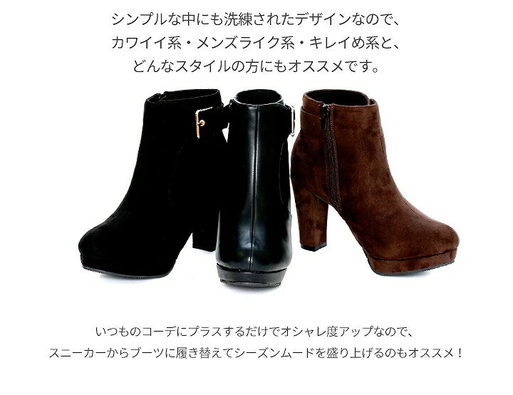 メーカー希望小売価格はメーカー商品タグに基づいて掲載しています→コチラ! ブーツ 痛くない レディース ヒール ラウンドトゥ ベルトデザイン 太ヒール 大きいサイズ 小さいサイズ 疲れない 歩きやすいSPEC サイズ 長さ ワイズ 幅 ヒール 筒丈 足首周り 履き口周り S (22.0〜22.5cm) 23.3cm 21.9cm 7.9cm 9.2cm 9.2cm 26.1cm 25.3cm M (23.0〜23.5cm) 24.0cm 22.4cm 8.0cm 9.2cm 9.5cm 26.8cm 26.0cm L (24.0cm) 24.7cm 22.9cm 8.1cm 9.4cm 9.8cm 27.5cm 26.7cm LL (24.5cm) 25.2cm 23.4cm 8.2cm 9.4cm 10.1cm 28.3cm 27.4cm 【Vivian】プラットフォームベルテッドショートブーツ '}" data-sheets-userformat="{'2':13185,'3':[null,0],'10':1,'11':4,'12':0,'15':'Arial','16':10}"> ・ラウンドトゥ×ベルトデザインは、どんなスタイルにも合わせやすく履くだけで気取り過ぎないこなれ感を演出 ・シンプルな中にも洗練されたデザインなので、カワイイ系・メンズライク系・キレイめ系と、どんなスタイルの方にもオススメです ・アッパーのセンターにある縦に入った切り替えラインがシャープな印象を与えて足を長く華奢に見せてくれる! 素 材 合成皮革(xxPU) スエード素材(xxS) カラー BLPU(ブラックPU) BLS(ブラックスエード) DBRS(ダークブラウンスエード) 生産国 中国 FITTING COMMENT 着用サイズ M 着用フットウェア タイツ ワイズ ぴったり 着用感 ぴったり コメント 高めのヒールですがストーム入りのデザインなので安定感があるのでとても履きやすいです。