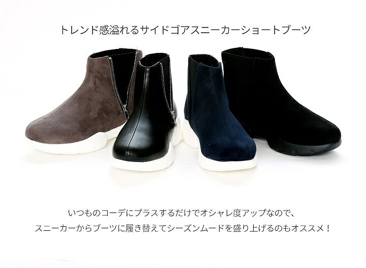 ・目を引くサイドの飾りジップデザインがコーデをピリッと引き締めてくれます! ・アッパーのセンターにある縦に入った切り替えラインがシャープな印象を与えて足を長く見せてくれる効果も! ・甘くなりすぎないシルエット&デザインなのでハンサムスタイルにもピッタリ★