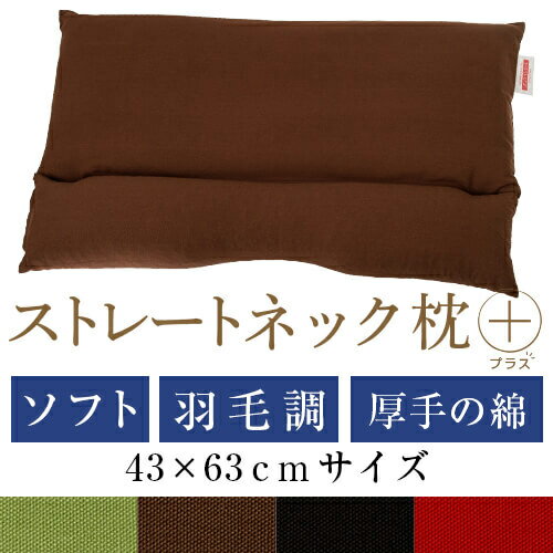 ストレートネック 枕 送料無料 ストレートネック枕 プラス 43×63 cm サイズ 高さ調節 洗える 羽毛調 綿 わた ソフト 厚手の綿 綿オックス 無地 まくら マクラ ネックフィット ネックフィット枕 首 肩 スマホ スマートフォン 首こり 肩こり 日本製 国産