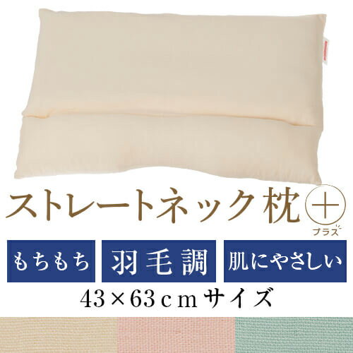 ストレートネック 枕 送料無料 ストレートネック枕 プラス 43×63 cm サイズ 高さ調節 洗える 羽毛調 綿 わた エラストマー 肌にやさしい 二重ガーゼ ダブルガーゼ まくら マクラ ネックフィット ネックフィット枕 首 肩 スマホ スマートフォン 首こり 肩こり 日本製 国産